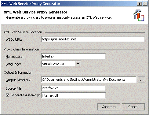 InterFAX用としてプロクシ・クラスに必要な全てのパラメータです。