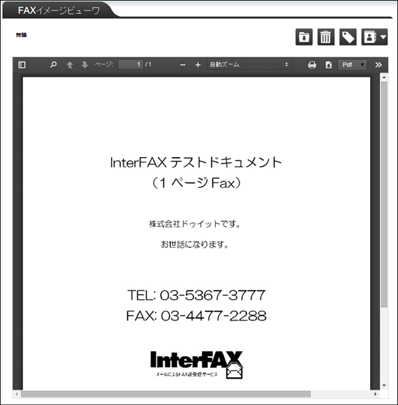 (確認)」をクリックすると、別ウィンドウでFAXイメージビューワが開きます。