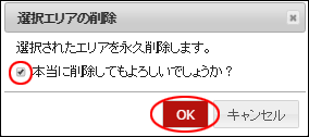 クリックするとサブメニューが表示され、次の操作がおこなえます。 ・ 最初のページに移動、最後のページに移動 複数ページFAXの場合、最初または最後のページに移動します。 ・ 右回転、左回転 受信FAXを右または左にワンクリックで90°回転できます。 ・ 手のひらツールを有効にする 手のひらツールを使用して画像をスクロールできます。 ・ 選択エリアの削除 FAX内容の一部を選択し、選択部分を黒塗り(削除)できます。 (1)「選択エリアの削除」をクリックします。 (2)カーソルが「+」に変わるので、範囲を選択します。 (3)以下の確認画面が表示され、チェックボックスにチェックを入れ、“OK”をクリックすると選択エリアが黒塗りに変わります。 ![]()