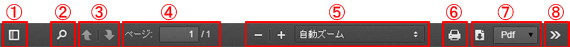 | D 拡大/縮小 | 「−」、「+」ボタンで表示倍率を変更できます。 また、プルダウンメニューで倍率を指定し切り替えることができます。 |
