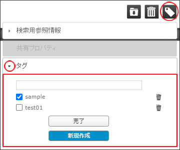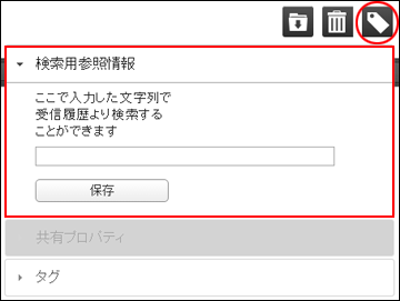 検索用の参照情報やタグを登録することができます。 詳細は次をご参照ください。 |