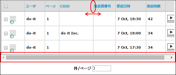 また、表示項目の一覧が画面の幅を超えると一覧の下にスクロールバーが自動表示され、左右にスクロールし各項目を確認することができます。
