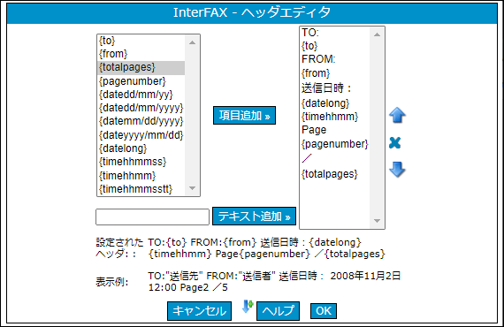 | {from} | 送信元(送り主)のCSIDが印字されます。 *注意事項 2) | INTERFAX | INTERFAX |