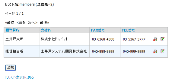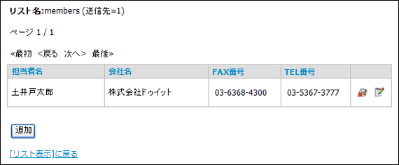 送信先のFAX番号、担当者名、会社名、TEL番号を入力して、「追加」ボタンをクリックします。