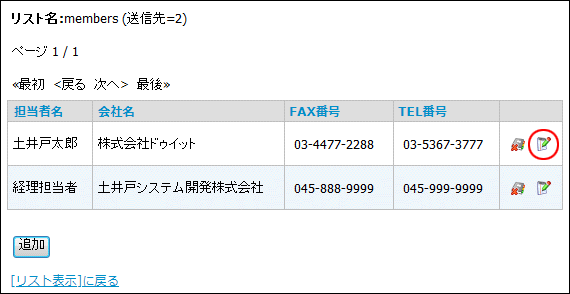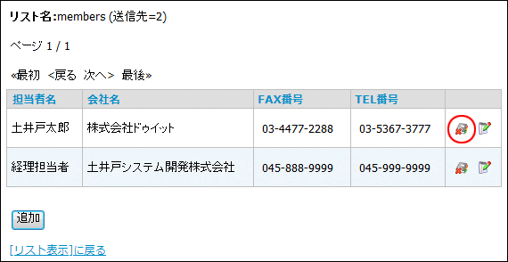 データを削除する場合は、データのリストが表示されている画面で、削除するデータの「(削除)」をクリックします。